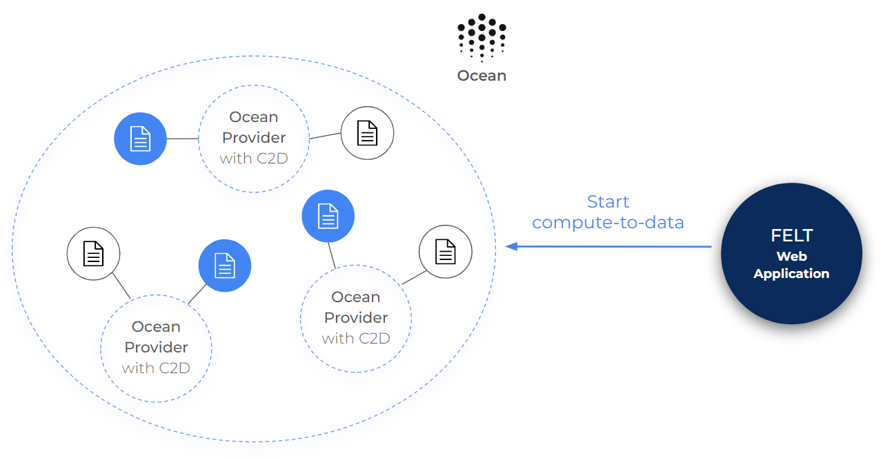 <figure><img src="https://3108959378-files.gitbook.io/~/files/v0/b/gitbook-x-prod.appspot.com/o/spaces%2FQeoBLy6rsAEy7Vmbbxzw%2Fuploads%2FrqFryICNodiGpYuFqey0%2Fimage.png?alt=media&#x26;token=586a0821-d275-4df9-bd90-5edeb931b005" alt=""><figcaption><p>The FELT application is interacting with Ocean protocol. It starts compute jobs and retrieve results.</p></figcaption></figure>